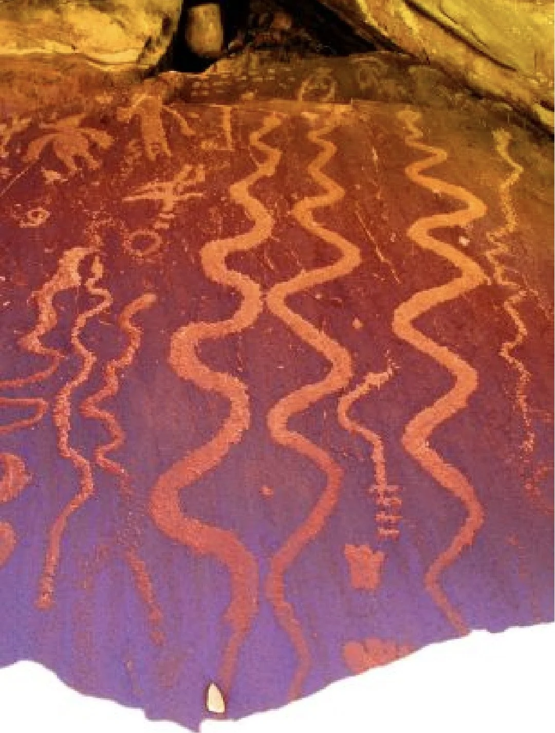 My wife Enilse, noticed that the terraces resembled a serpent. The serpent is a symbol for the Sun in my Anasazi area of the SW. Here is a serpent panel, from the Arizona strip, that should be fully in Sunlight at the high point of the Sun on the Winter Solstice.