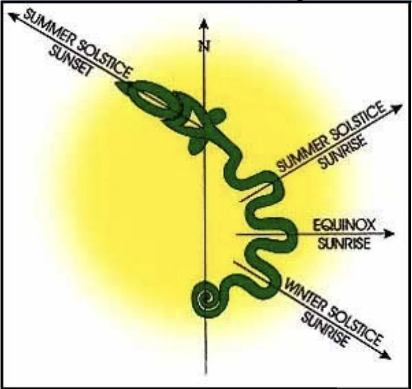 After I finished the above article, I sent a draft to a friend, Tom Rachunas, who did some research and discovered that the famous Serpent Mound in Ohio is also a seasonal marker. This is something I was unaware of.