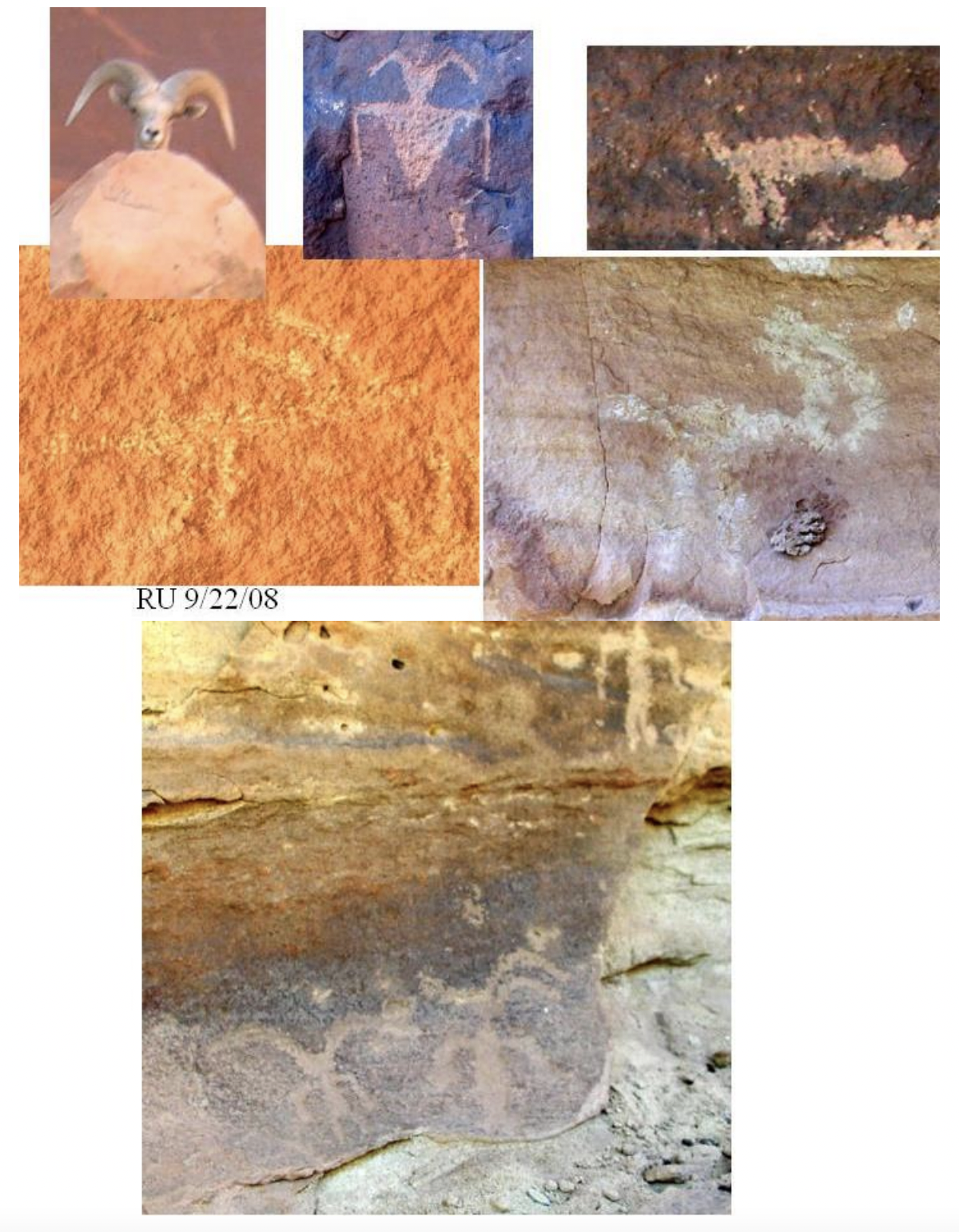 I took the photo to the right of a big horn sheep behind a rock, along with petroglyphs and pictographs showing them as 2 leggeds or with other human features. They could not separate their identities since they were one.